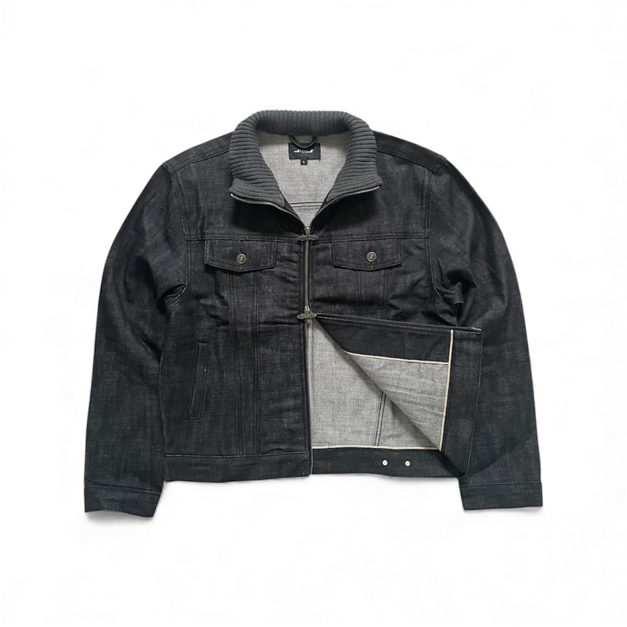 A 15oz Black Selvedge Denim with a slight crop to the boxy silhouette. This jacket features a ribbed collar that can be worn up or down depending on personal preference. Custom logo dual zipper with custom hardware and a Ready For War centred back tab.